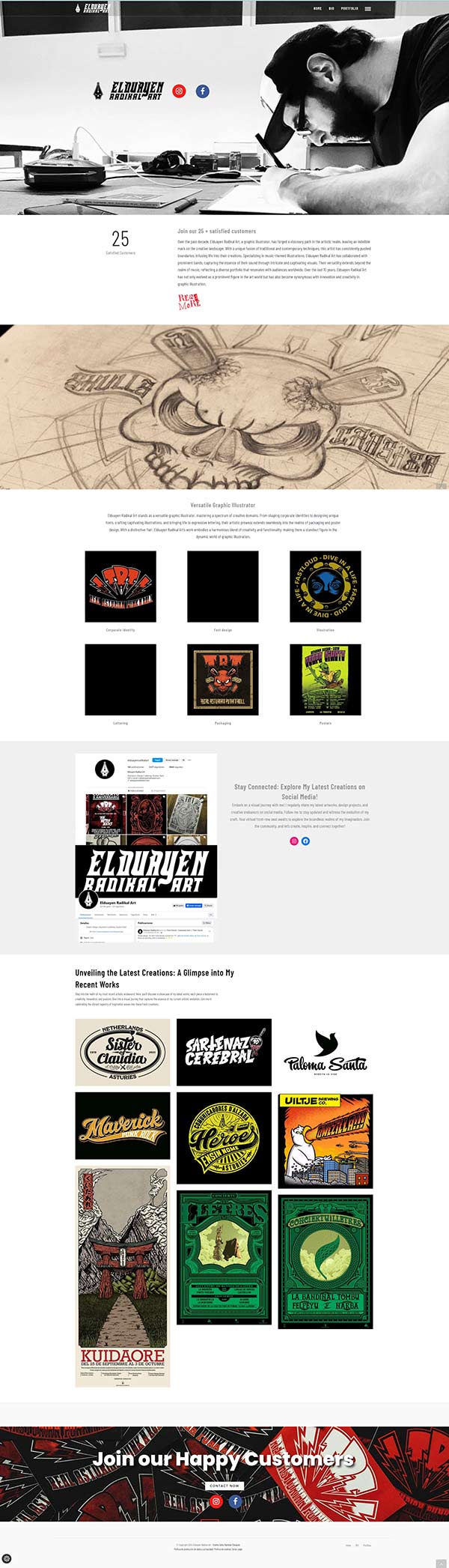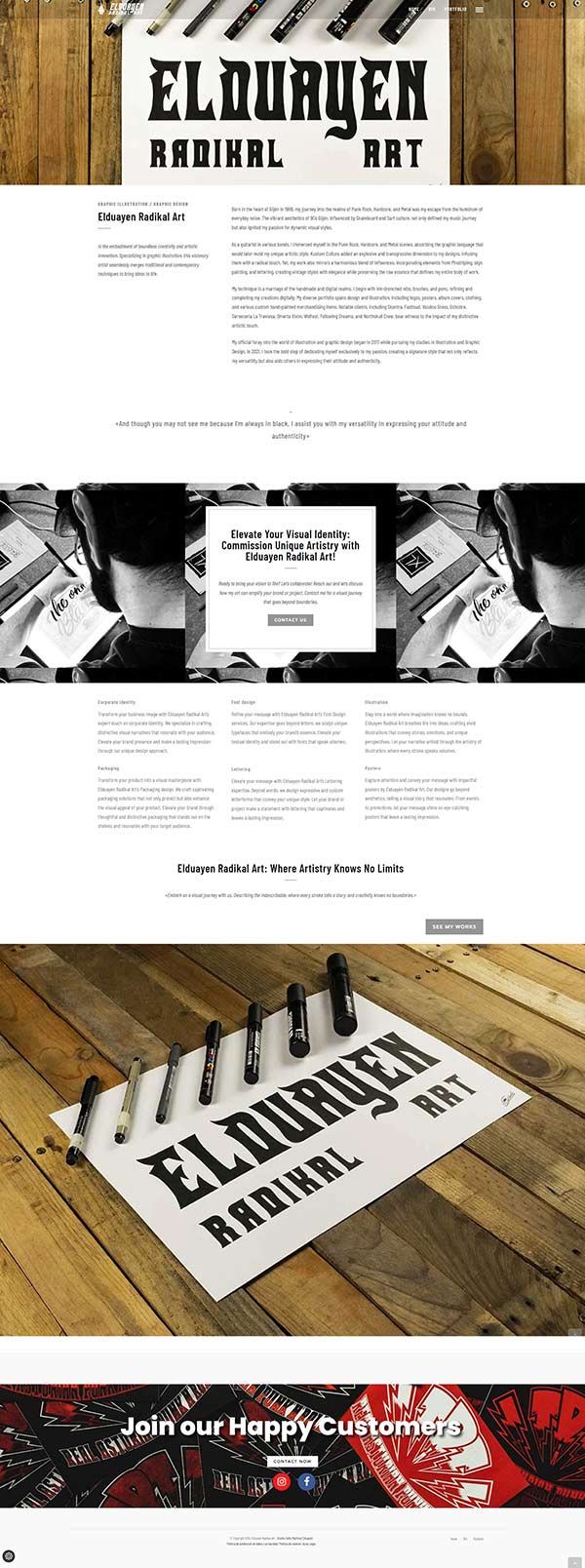 Construí una narrativa visual cautivadora que captura la esencia rebelde y vibrante del arte de Elduayen Radikal Art. Cada elemento del diseño fue cuidadosamente seleccionado para transmitir la energía única de sus obras, creando una experiencia inmersiva que deja una impresión duradera en el espectador.
